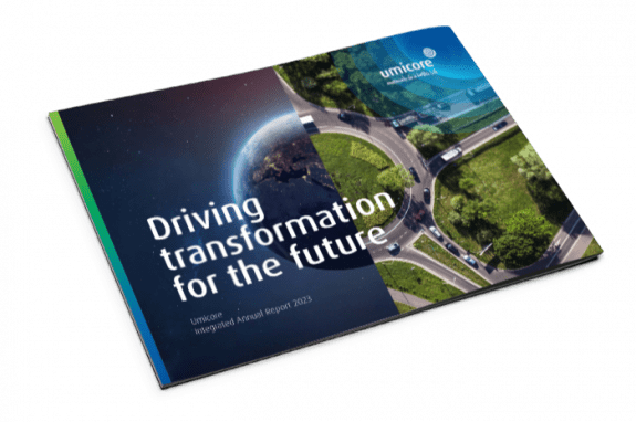 글로벌 순환 소재 기술 그룹 유미코아가 2023년 통합연차보고서: 미래를 위한 전환(Driving transformation for the future)을 발간했다. 이 보고서는 지난 한 해 유미코아의 전략, 재무, 운영 차원의 성과 및 ESG(환경·사회·지배구조) 성과에 대한 개요를 종합적으로 담고 있다.