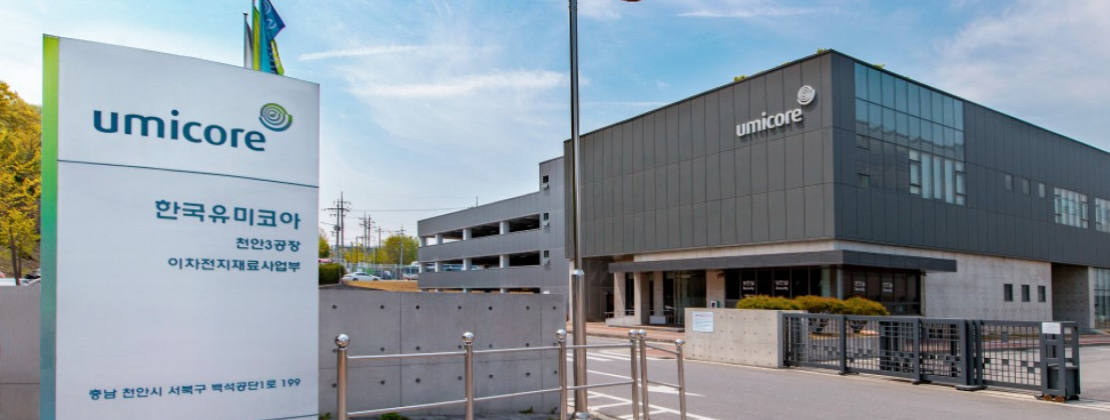 벨기에에 본사를 둔 Umicore 그룹은 1999년 한국에 법인을 설립했습니다. 한국 내 이차전지사업부(RBM)는 서울에서 남쪽으로 50km 떨어진 천안에 위치하고 있습니다. Umicore RBM Korea는 2000년부터 벨기에의 그룹 R&D 기술과 캐나다에서 다년간 축적한 양산 경험을 토대로 리튬-이온 충전식 배터리의 양극 재료를 생산하고 있습니다.